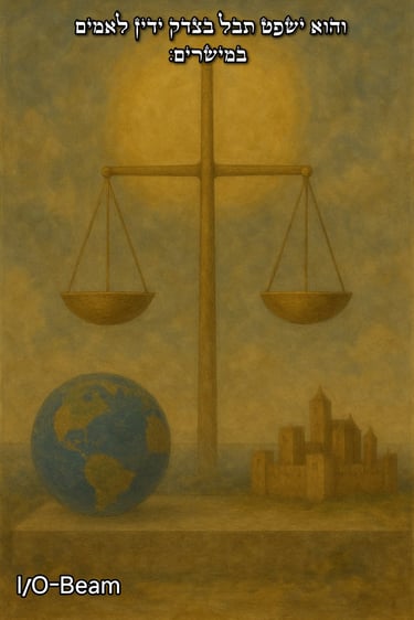 וְהוּא יִשְׁפֹּט תֵּבֵל בְּצֶדֶק יָדִין לְאֻמִּים בְּמֵישָׁרִים , תהילים פרק ט' פסוק ט'.