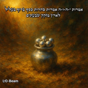 אִמְרוֹת י-ה-ו-ה אֲמָרוֹת טְהֹרוֹת כֶּסֶף צָרוּף בַּעֲלִיל לָאָרֶץ מְזֻקָּק שִׁבְעָתָיִם , תהילים פרק י"ב פסוק ז'.