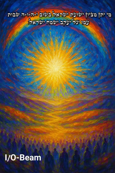 מִי יִתֵּן מִצִּיּוֹן יְשׁוּעַת יִשְׂרָאֵל בְּשׁוּב י-ה-ו-ה שְׁבוּת עַמּוֹ יָגֵל יַעֲקֹב יִשְׂמַח יִשְׂרָאֵל , תהילים פרק י"ד פסוק ז'.