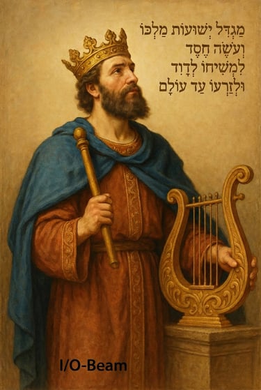 מַגְדִּל יְשׁוּעוֹת מַלְכּוֹ וְעֹשֶׂה חֶסֶד לִמְשִׁיחוֹ לְדָוִד וּלְזַרְעוֹ עַד עוֹלָם , תהילים י"ח נ"א